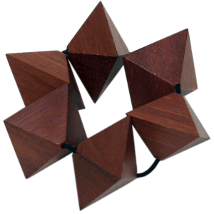 The puzzle is to assemble the bracelet into a self supporting and stable rhombic dodecahedron.